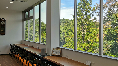 すべての客席が大きな窓に向かい、猪名川町の空と里山の自然を満喫できます。