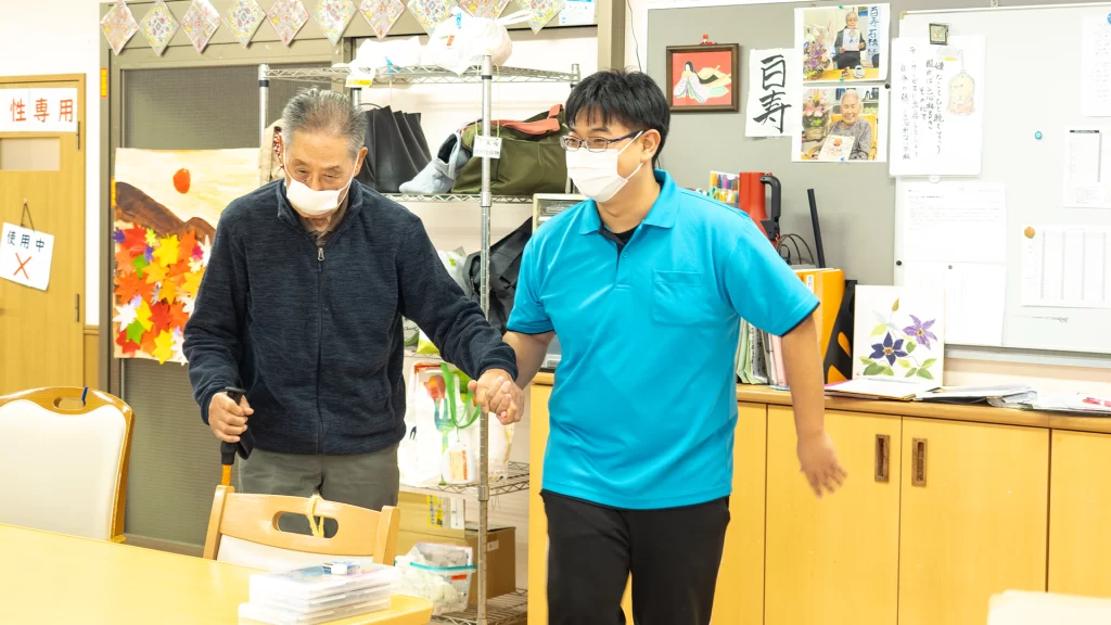 到着後は血圧・体温測定を行い、当日の体調を確認します。安心して過ごせるよう、無理のないペースでスタートします。